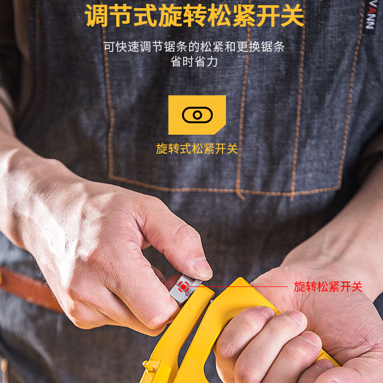 鋸架可快速調(diào)節(jié)鋸條的松緊和更換鋸條省時省力