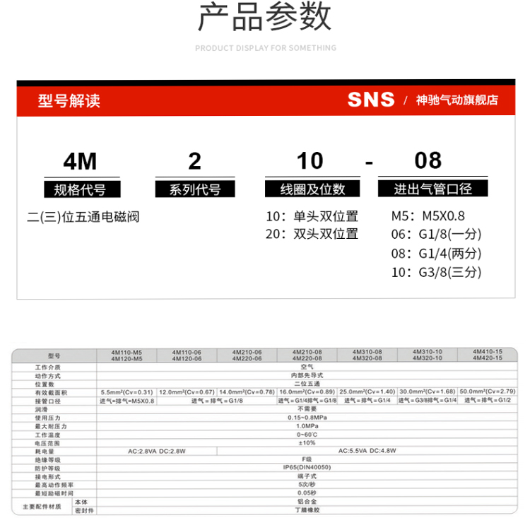 SNS神馳氣動電磁閥氣動控制閥氣缸氣閥換向24v220v電磁電閥