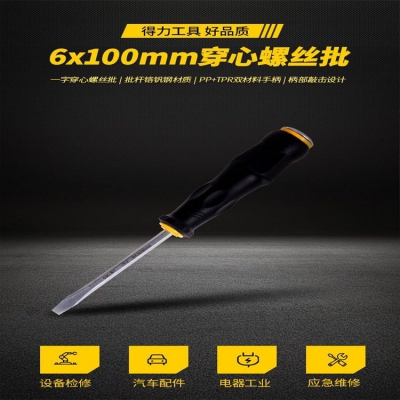 得力加長(zhǎng)一字穿心螺絲刀工業(yè)級(jí)改錐起子螺絲刀套裝小螺絲批