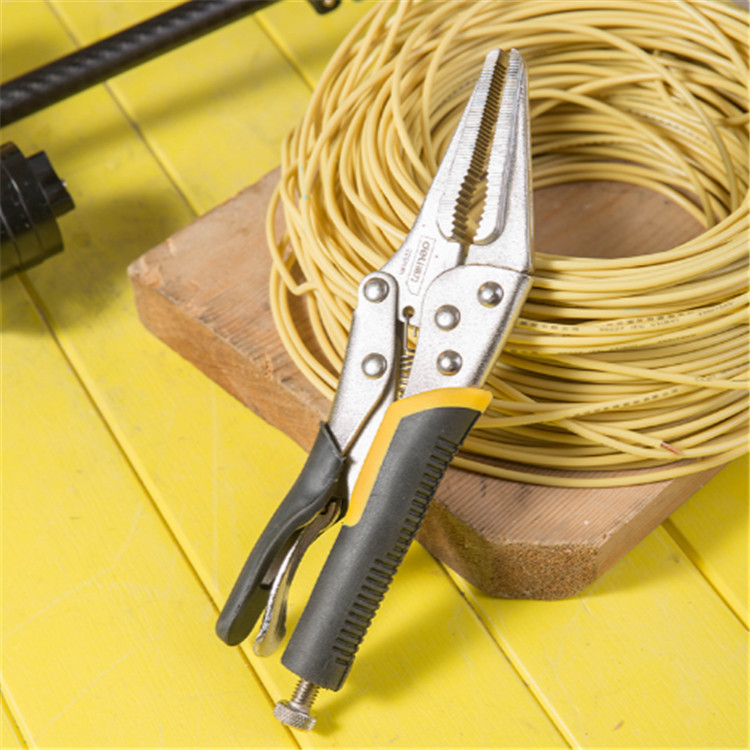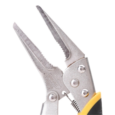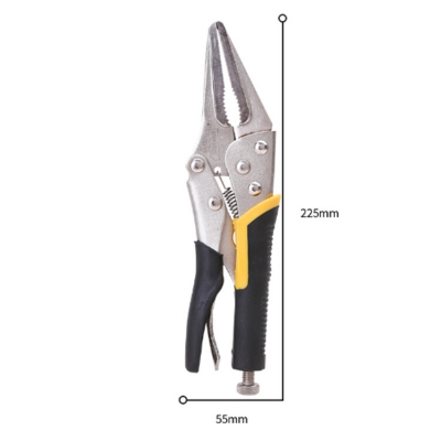 尖嘴大力鉗鉗頭采用高碳鋼精工鍛造,熱處理后硬度達到42-45HRC。