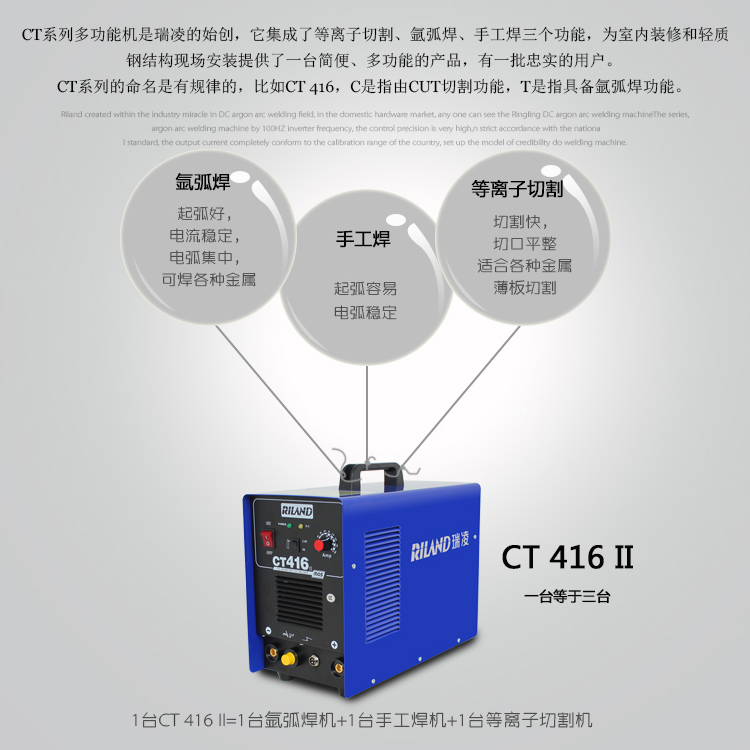 瑞凌CT-416小型家用氬弧/電焊/等離子切割三用電焊機220v