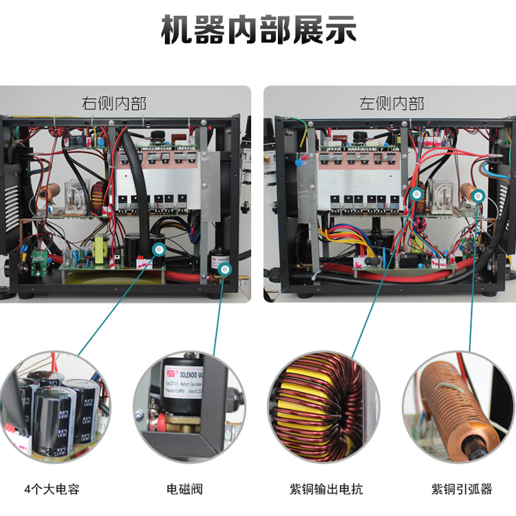 焊機4個大電容、電磁閥、紫銅輸出電抗、紫銅引弧器