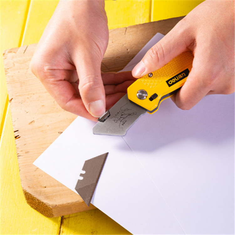 得力鋅合金折疊割刀采用可折疊設(shè)計,尾部帶筆夾,方便攜帶。產(chǎn)品采用SK5優(yōu)質(zhì)材料,鋒利耐用,內(nèi)置5節(jié)備用刀片。