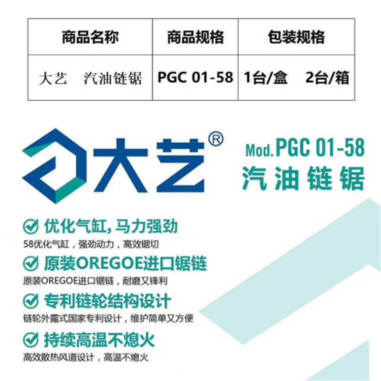 大藝PGC D1-58汽油鏈油鋸耐高溫、抗壓高、結實耐用。