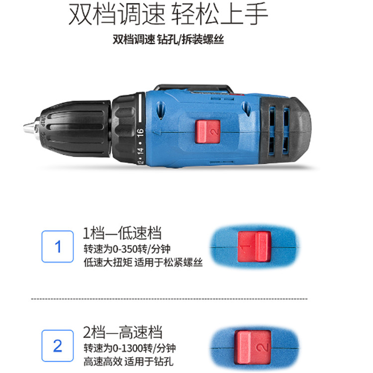 東成充電式起子電鉆擁有無級變速開關(guān),按壓按鈕開始工作,隨著按壓行程增大轉(zhuǎn)速增快