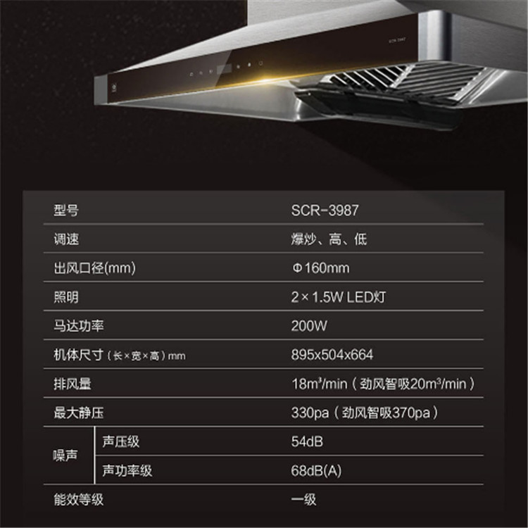 櫻花SCR-3987 雙炫風(fēng)2.0吸油煙機(jī)頂吸式抽油煙機(jī)大吸力家用吸油煙機(jī)產(chǎn)品參數(shù)