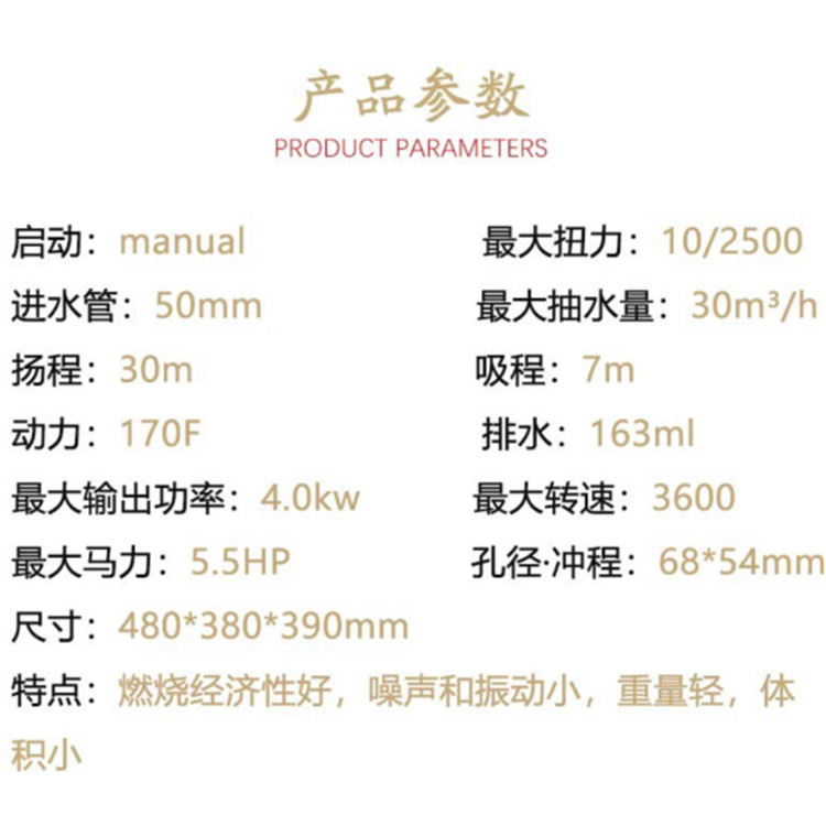 達順源 2寸汽油機水泵全銅電機,堅固耐用,強勁動力,提高工作效率。