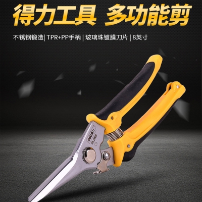 得力工具多功能剪刀電工剪家用電線剪線槽剪塑料剪8英寸不銹鋼剪
