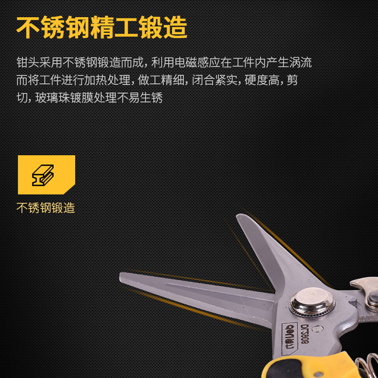 多功能剪鉗頭采用不銹鋼鍛造而成,利用電磁感應(yīng)在工件內(nèi)產(chǎn)生渦流而將工件進行加熱處理