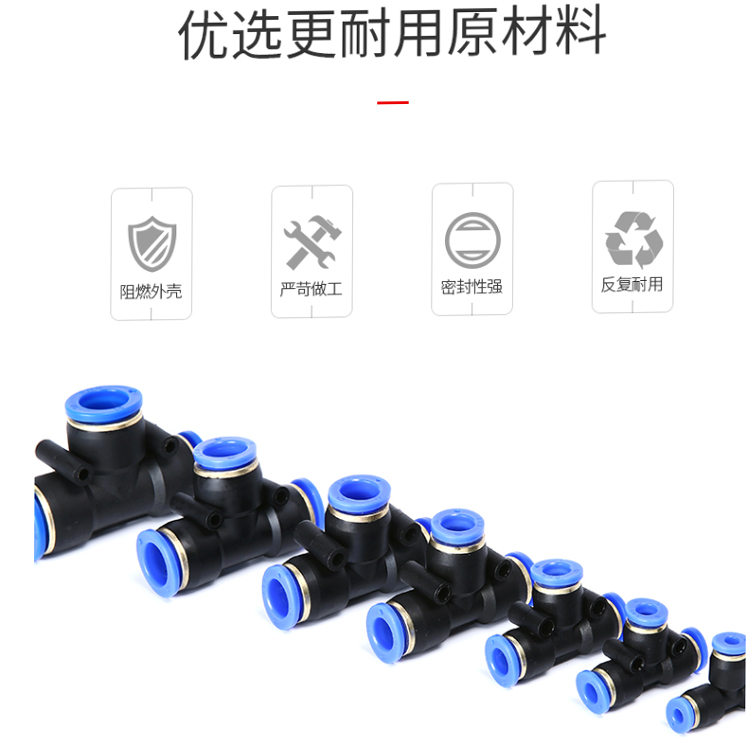 SNS神馳氣動三通快速接頭阻燃外殼設(shè)計,安全性提升。