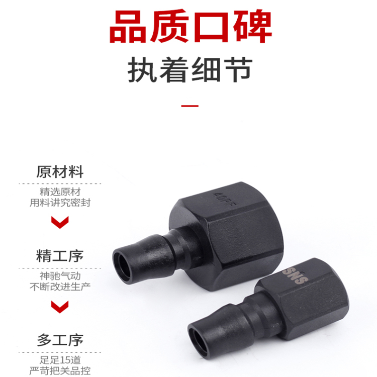 SNS神馳氣動自鎖塑料快速接頭快速接頭塑鋼材質,不生銹,更耐用。