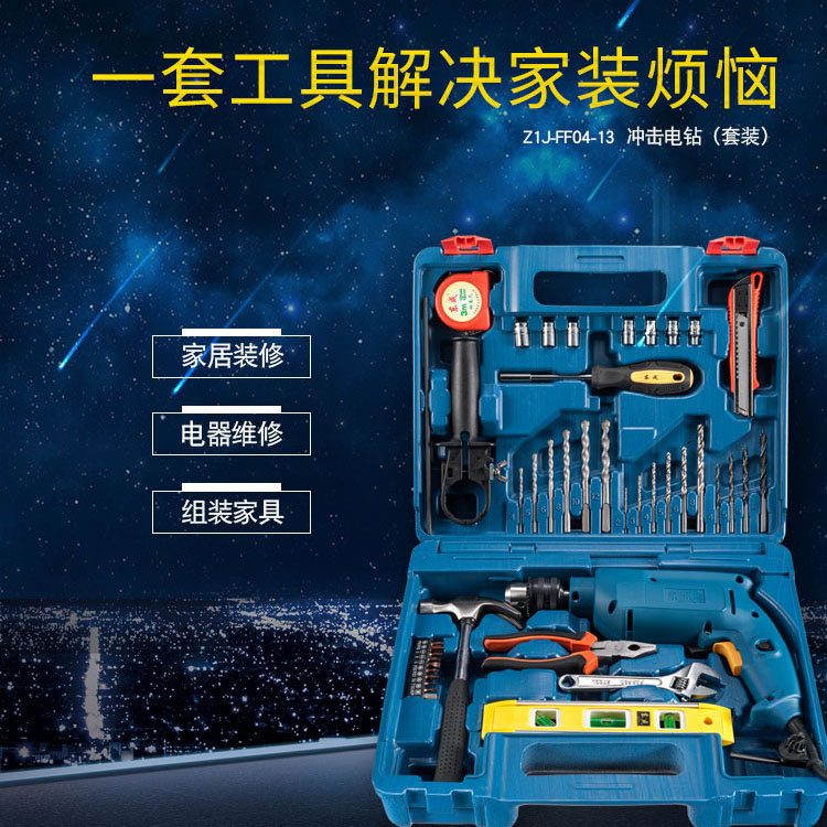 電鉆多功能沖擊鉆套裝,500W強(qiáng)勁動(dòng)力,可調(diào)速度。