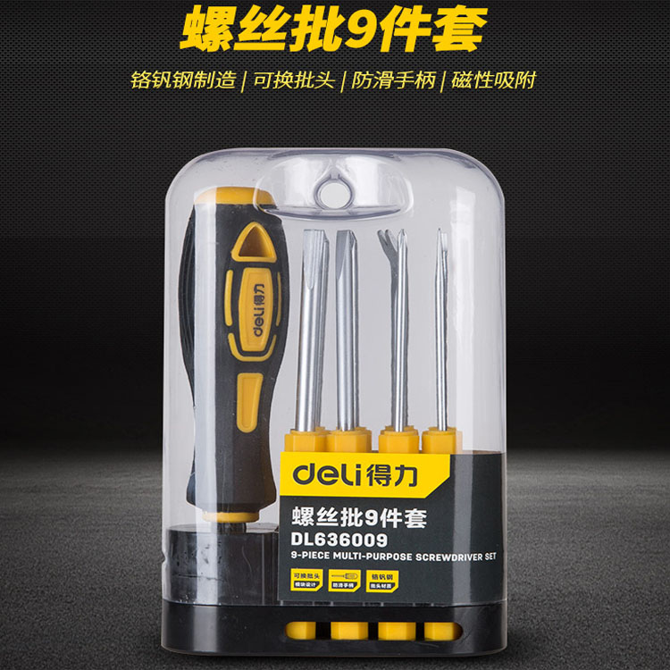 得力工具十字螺絲刀工業(yè)級(jí)改錐起子梅花螺絲刀套裝帶磁小螺絲刀