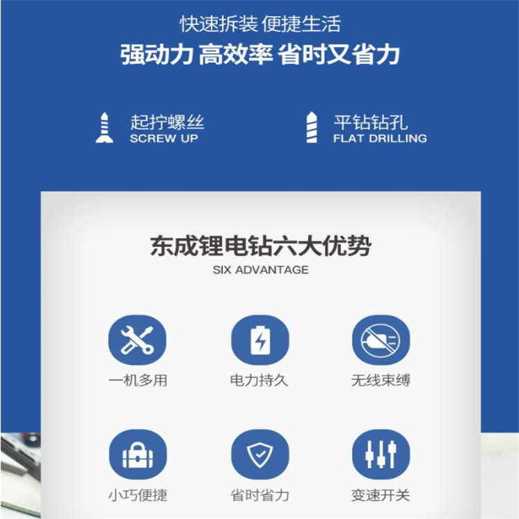 東成充電式起子電鉆快速拆裝 便捷生活 強(qiáng)動(dòng)力 高效率 省時(shí)又省力