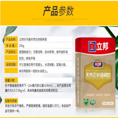 立邦樂(lè)可施天然石材瓷磚膠20kg,存放于陰涼干燥處,嚴(yán)禁雨淋受潮
