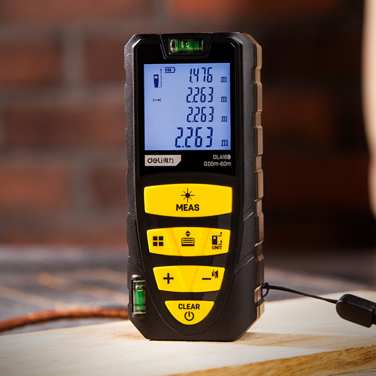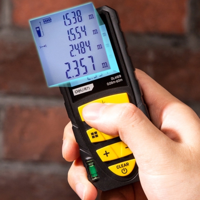 得力手持式激光測(cè)距儀高精度電子尺家用紅外量房?jī)x40-120米測(cè)房?jī)x