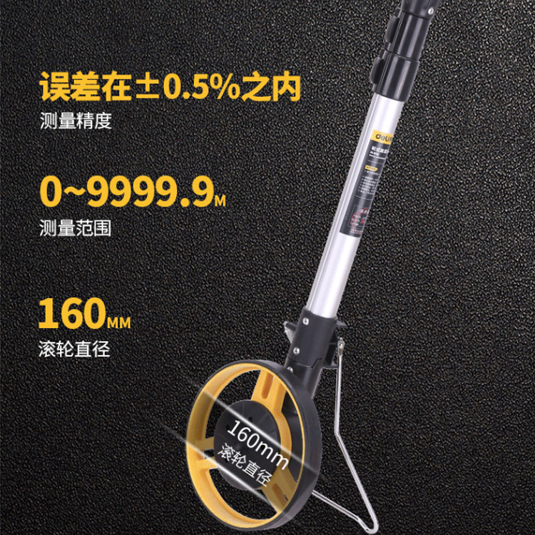 得力電子數(shù)顯測距輪尺手推滾輪式測距儀數(shù)顯量地量路手持式測量輪