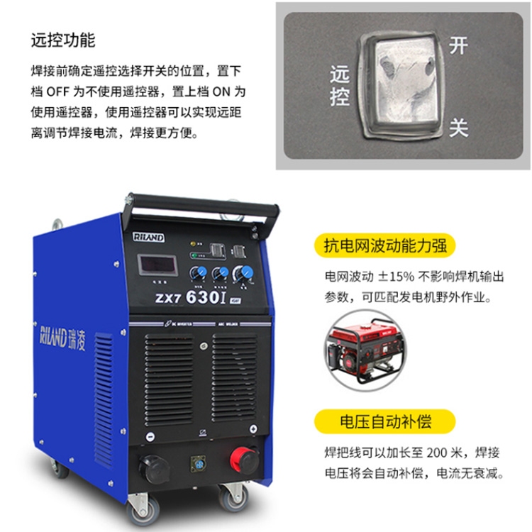 焊機(jī)焊把線可以加長至200米,焊接電壓將會自動(dòng)補(bǔ)償,電流無衰減