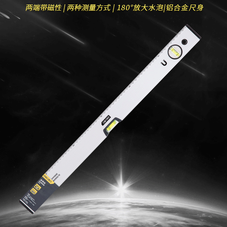 水平尺兩端帶磁性、兩種測量方式、180°放大水泡、鋁合金尺身
