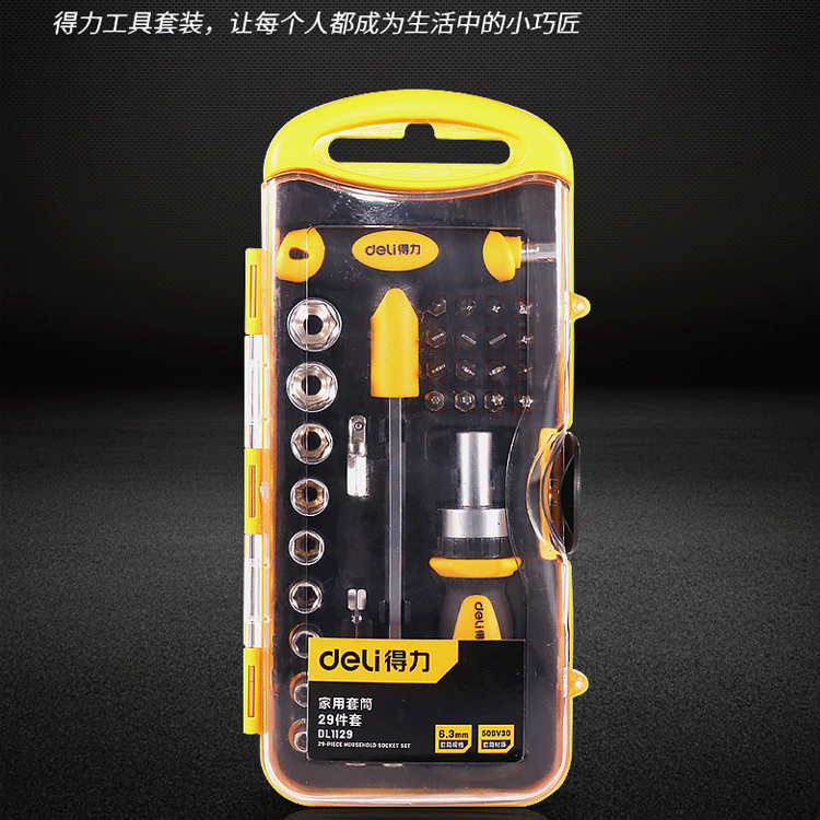 得力工具鉻釩鋼材質(zhì)批頭PP+TPR材質(zhì)手柄家用套筒29件套DL1129