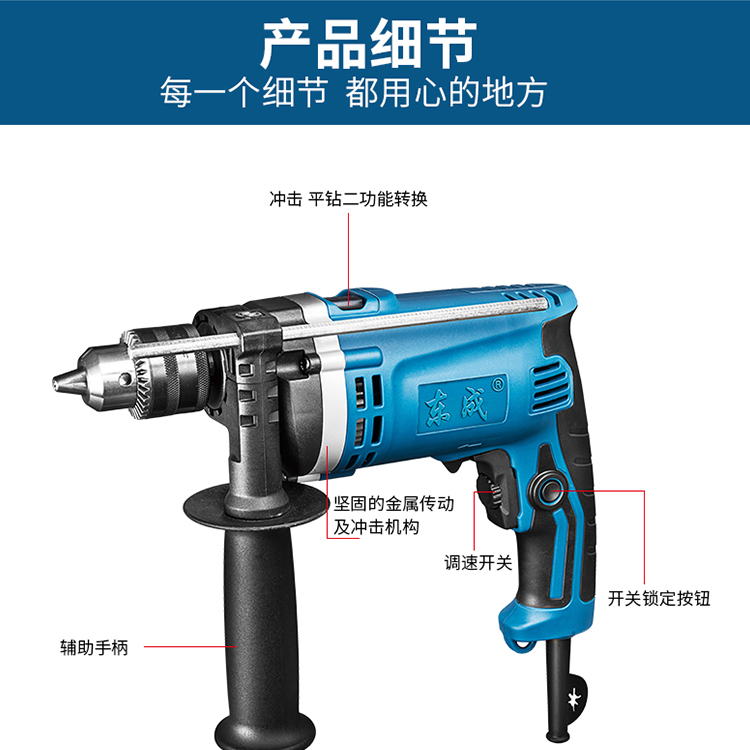 東成手電鉆J1Z-FF07-13正品電動工具多種用途,輕松應對,高效、省時、安全,適用于木材、金屬、玻璃、塑料等鉆孔。