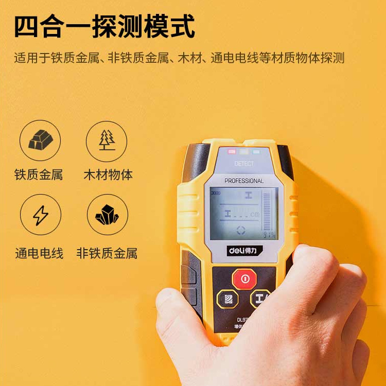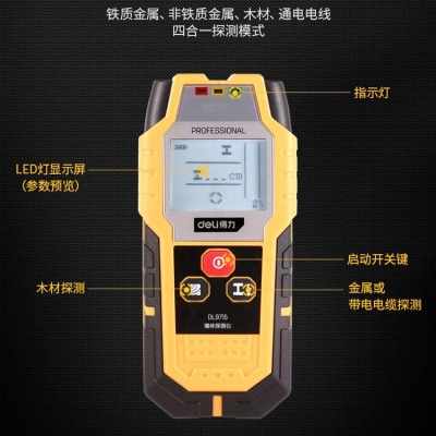 得力多功能墻壁墻體探測(cè)儀墻內(nèi)測(cè)鋼筋電線木龍骨金屬檢測(cè)器