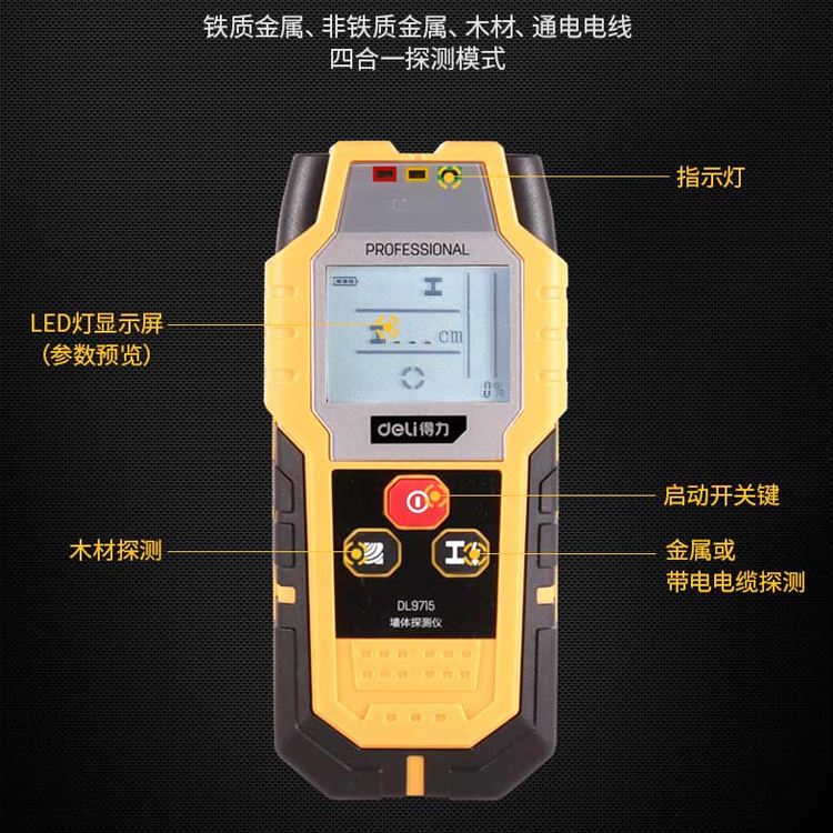 檢測(cè)器鐵質(zhì)金屬、非鐵質(zhì)金屬、木材、通電電線,四合一探測(cè)模式