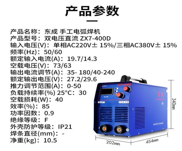 東成雙電壓ZX7-400D直流手工弧焊機雙電壓功能齊全,焊接范圍范圍廣泛