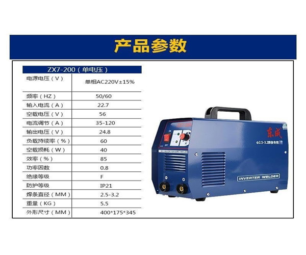 東成單相ZX7-200直流手工弧焊機(jī),單電壓參數(shù)展示