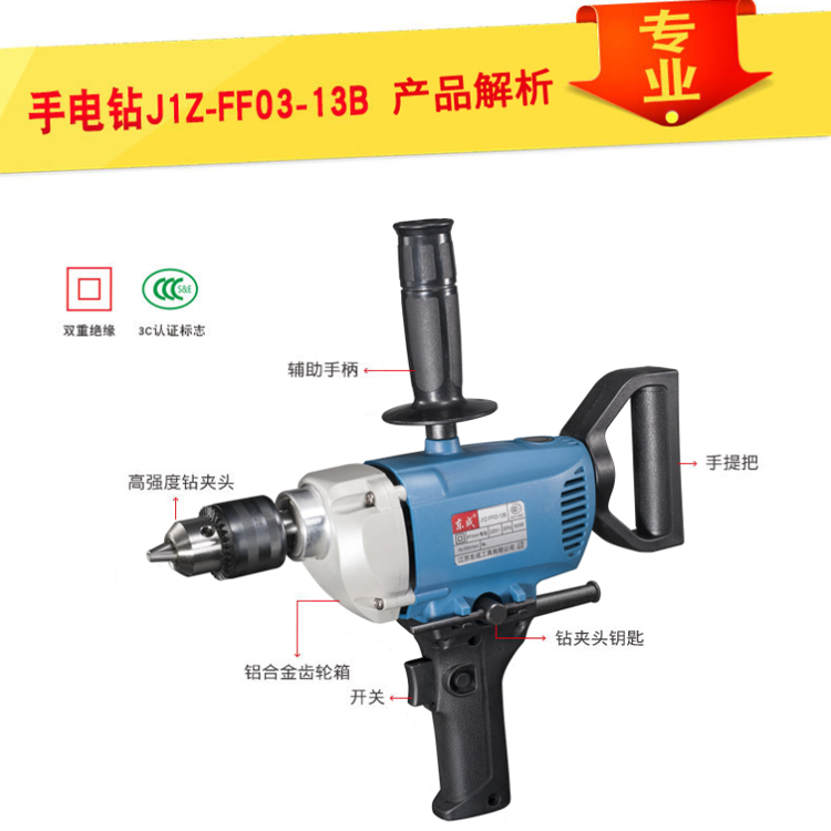 東成手電鉆J1Z-FF03-13B 沖擊鉆模式下可以墻面
