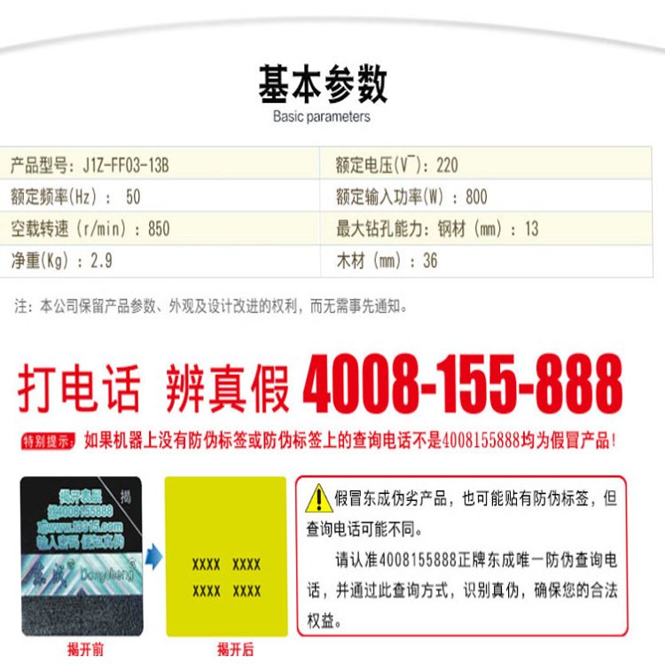 東成手電鉆J1Z-FF03-13B 除了緊固、拆卸螺絲外