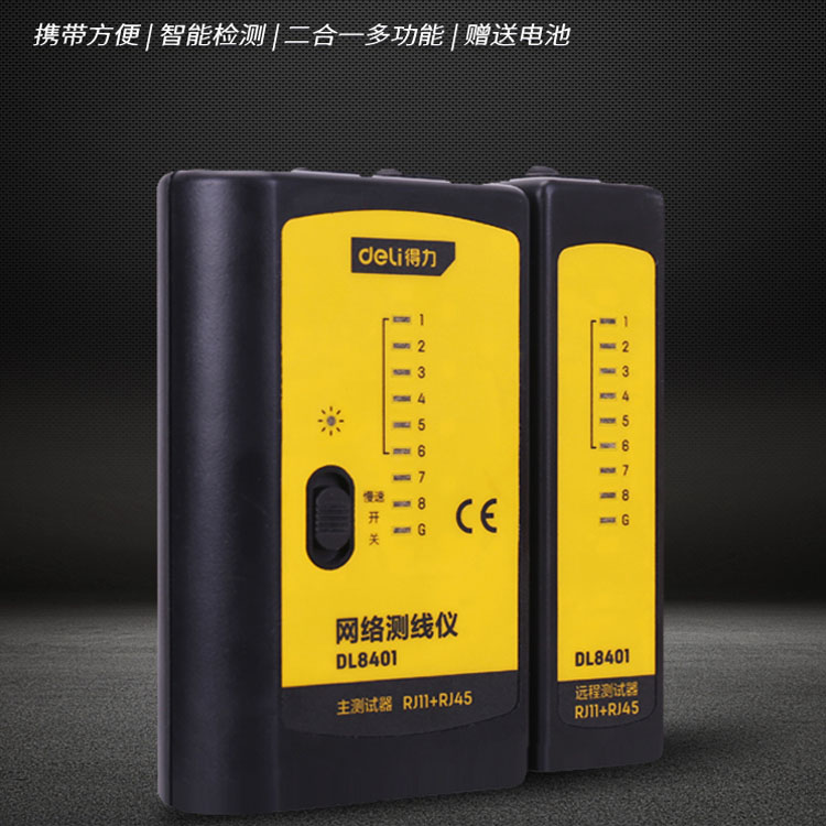 得力多功能網(wǎng)線測試儀電話線測線儀網(wǎng)絡(luò)信號通斷檢測器工具