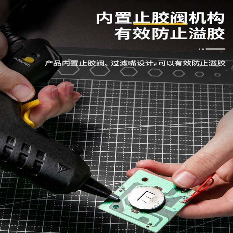 熱膠槍內(nèi)置起膠閥機(jī)構(gòu),有效防護(hù)溢膠