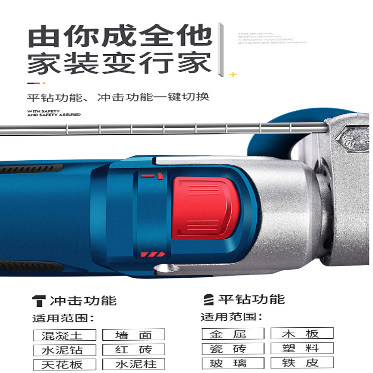 沖擊鉆模式下可以墻面,混凝土打孔;起子機模式下可以無傷上下擰螺絲等。