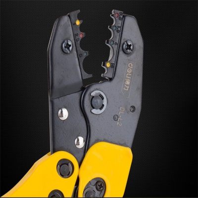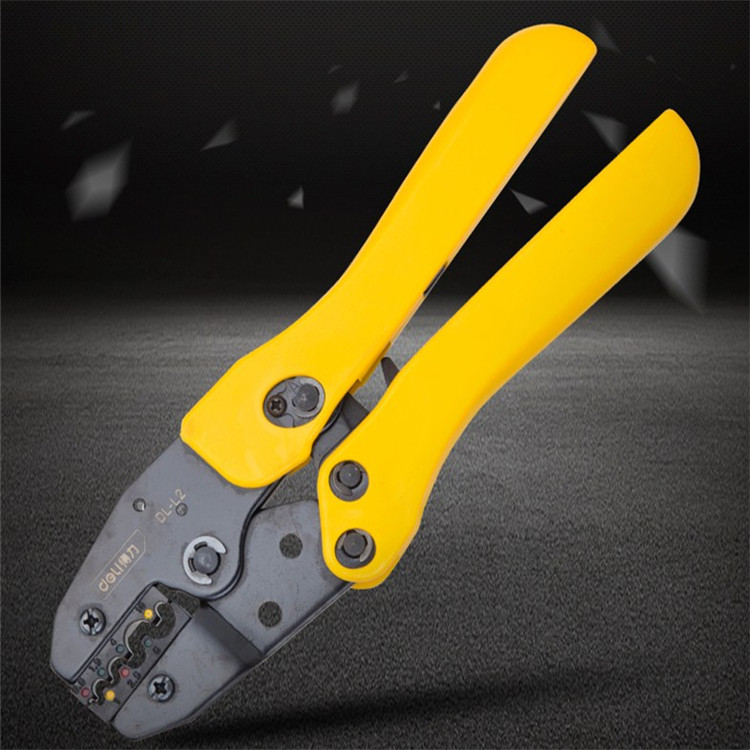 得力壓線鉗冷壓端子棘輪手動快速接線鉗管型夾線電工小型壓接鉗