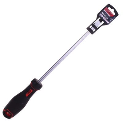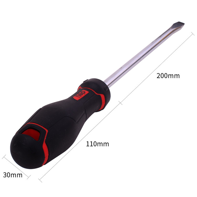 得力S2一字螺絲批采用PP+TPR雙色材質(zhì),黑色和紅色的沉穩(wěn)搭配