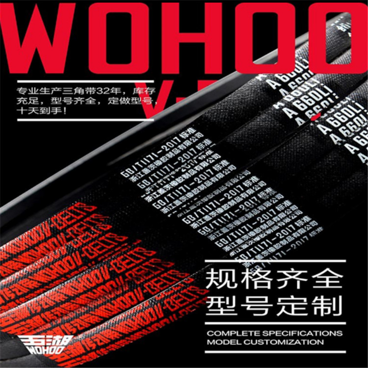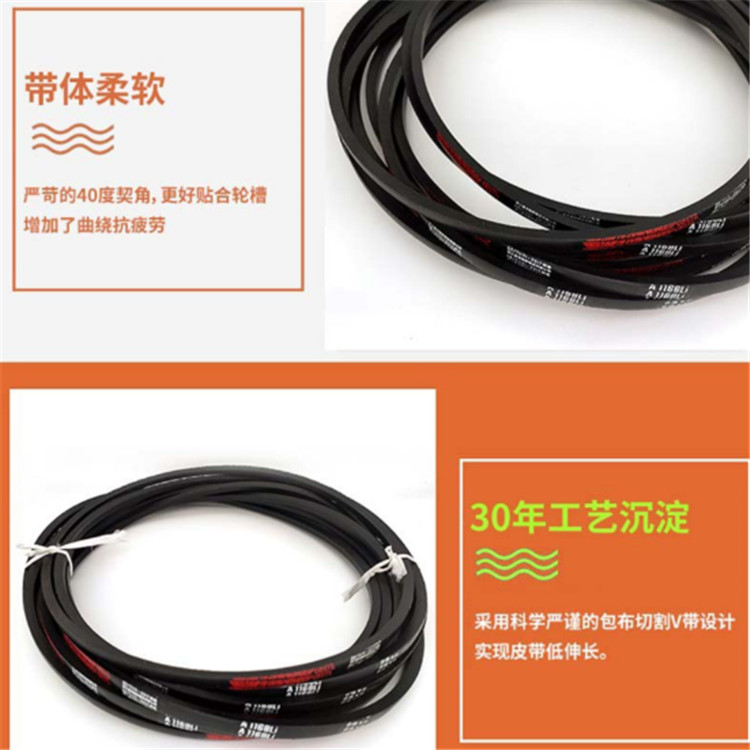 五湖 A型三角帶高強(qiáng)度、低伸長,耐磨、耐高溫等特點(diǎn)。