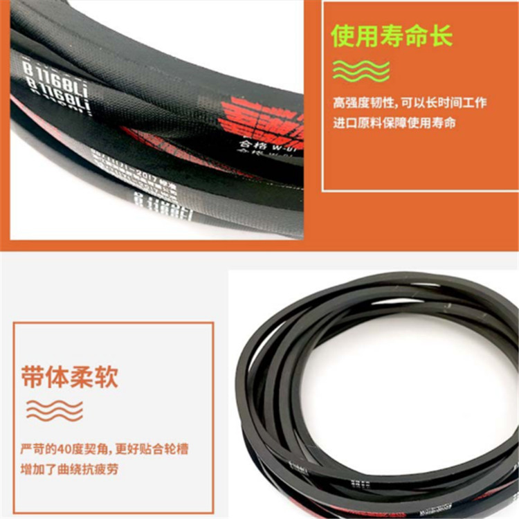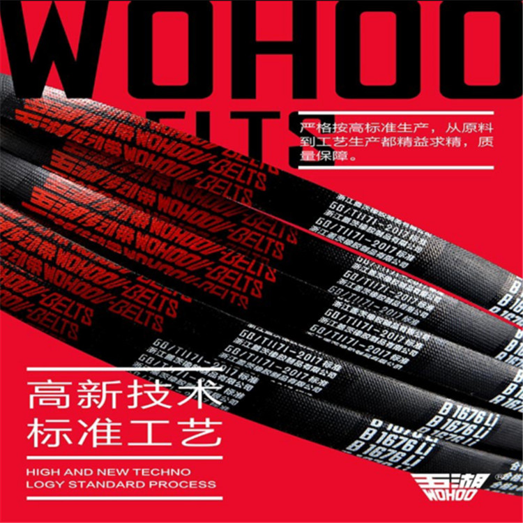 五湖 B型三角帶高強(qiáng)度、低伸長(zhǎng),耐磨、耐高溫等特點(diǎn)。