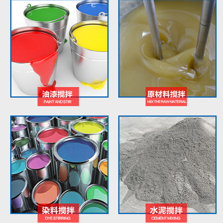 適用于油漆攪拌、燃料攪拌、原材料攪拌、水泥攪拌、飼料攪拌。