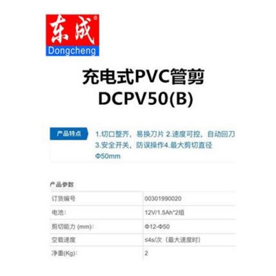 東成充電式PVC管剪剪切直徑可達(dá)φ50mm