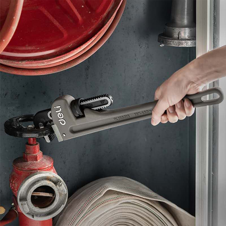 寧波得力鋁合金管子鉗DL105048工業(yè)級水管鉗直角活扳手安裝工具