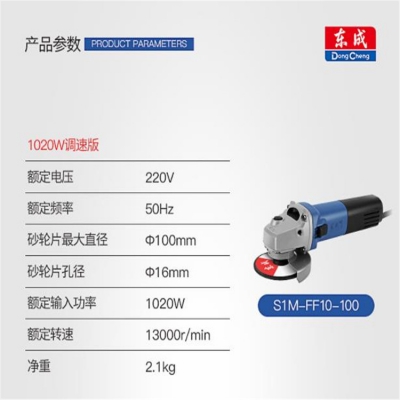 東成角向磨光機S1M-FF10-100S切割金屬木材除銹拋光機打磨機