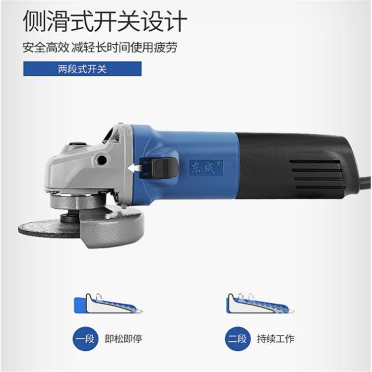 東成角向磨光機采用側滑式開關,安全高效,減輕長時間使用疲勞