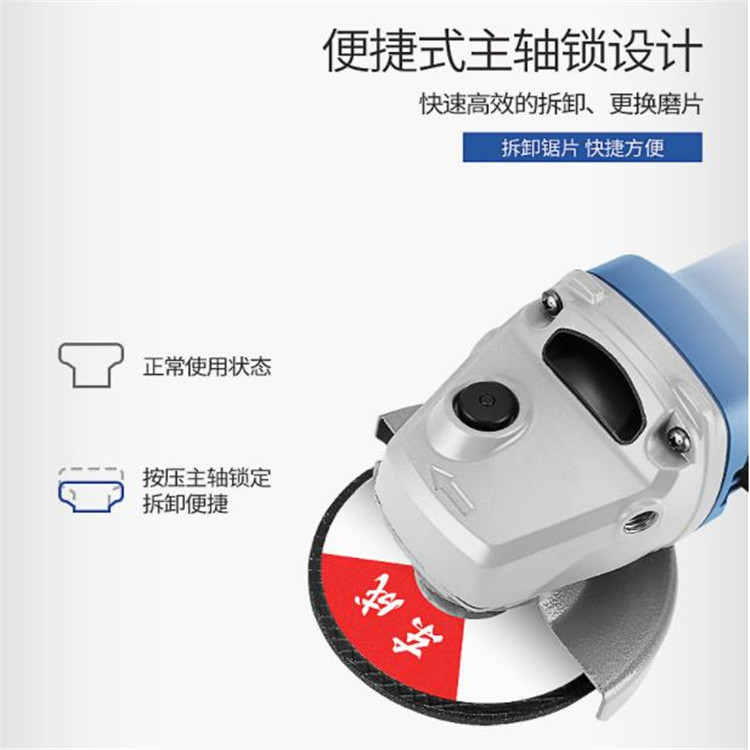 東成角向磨光機便捷式主軸鎖設計,能夠快速高效的拆卸、更換磨片