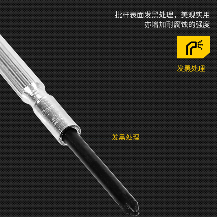 螺絲批批桿表面發(fā)黑處理,美觀實(shí)用,亦增加耐腐蝕的強(qiáng)度