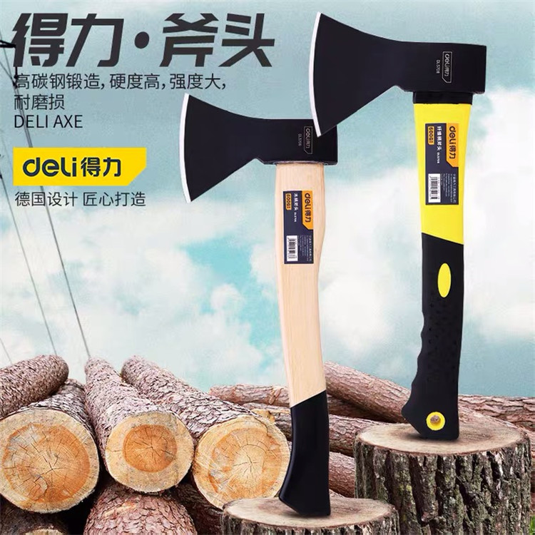 得力木柄斧頭高碳鋼鍛造,硬度高,強(qiáng)度大,坡面設(shè)計(jì)