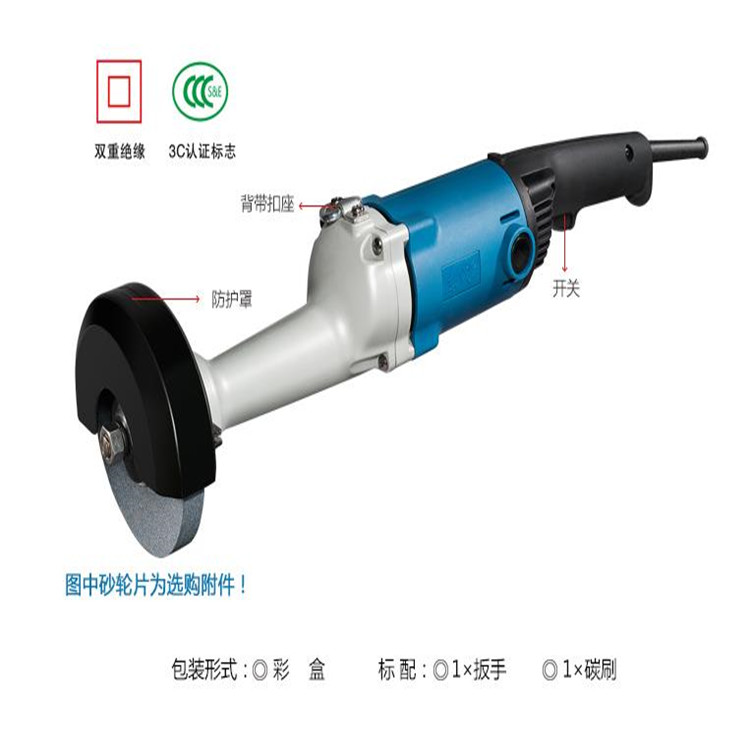 東成直向砂輪機從人機工程學出發(fā)設計機身和握持手柄,配合吊帶使工作更輕松