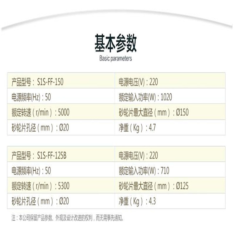 東成直向砂輪機不同型號基本參數(shù)
