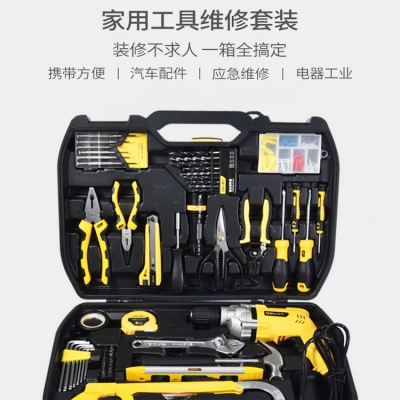 得力多功能家用工具箱五金工具電工手動(dòng)綜合維修組套電鉆套裝