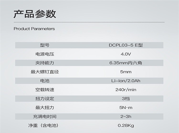 東成充電式直柄起子機產(chǎn)品參數(shù)
